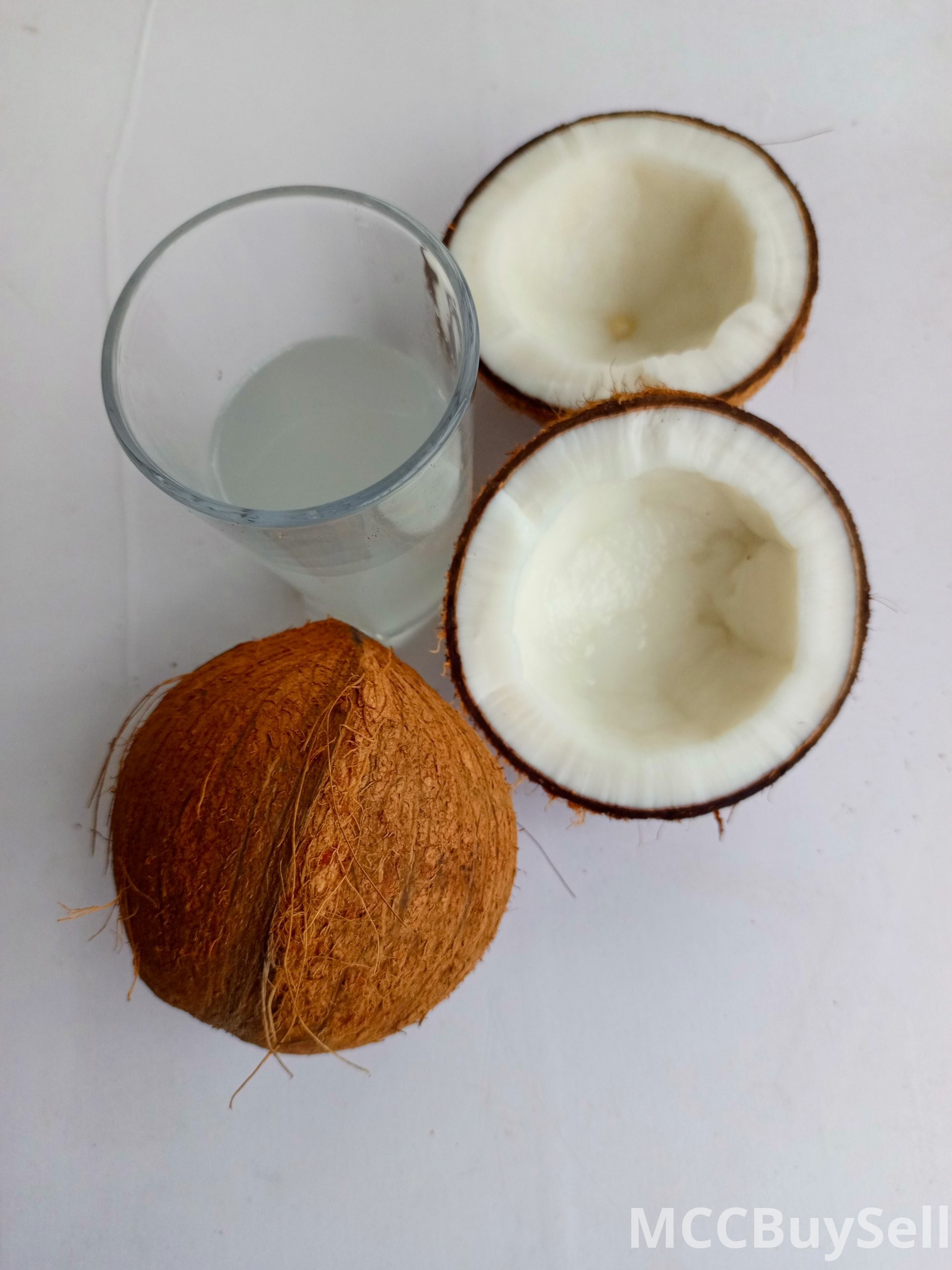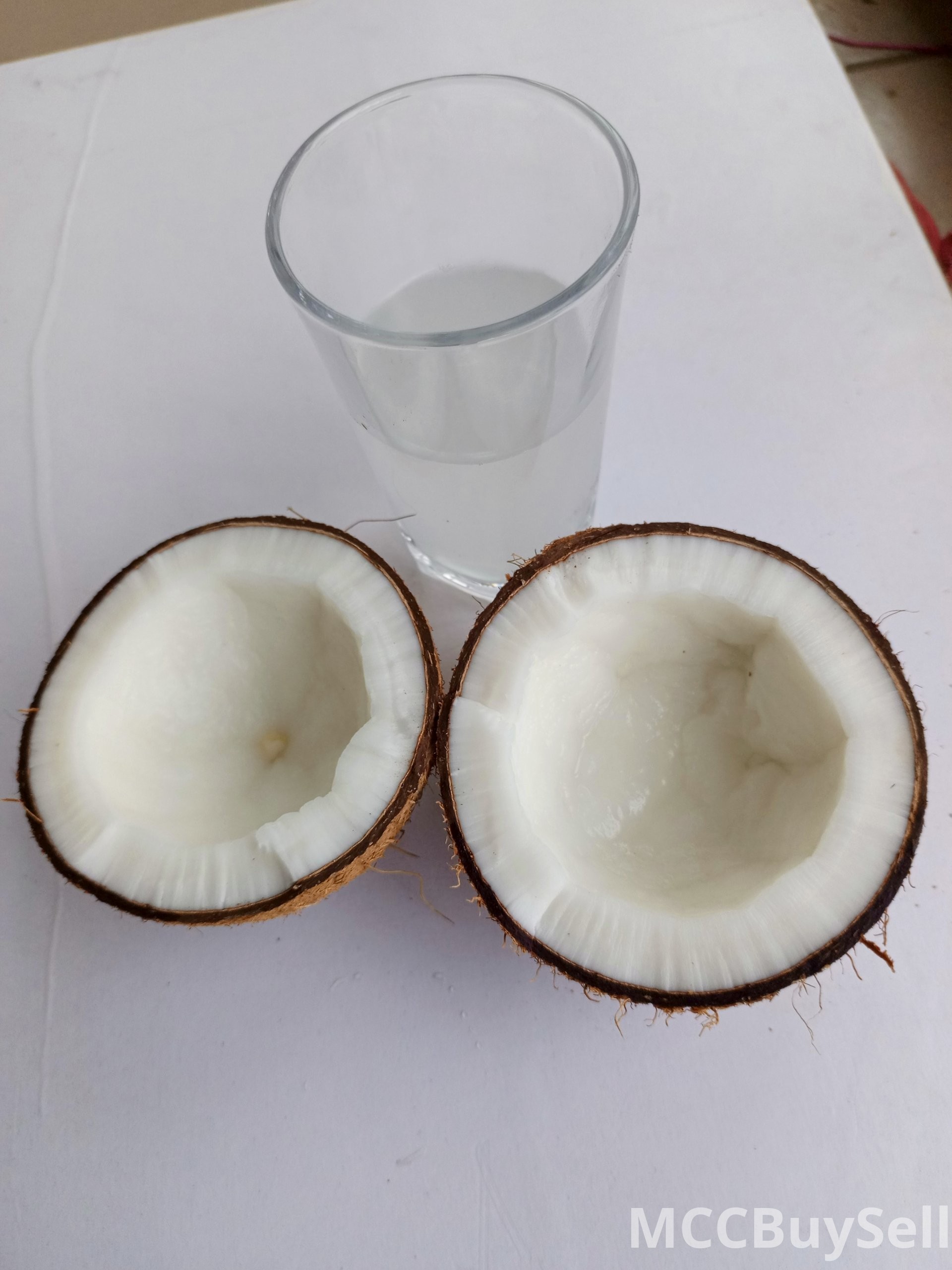 . The hard shell contains the edible white meat kernel and the milky liquid coconut water.