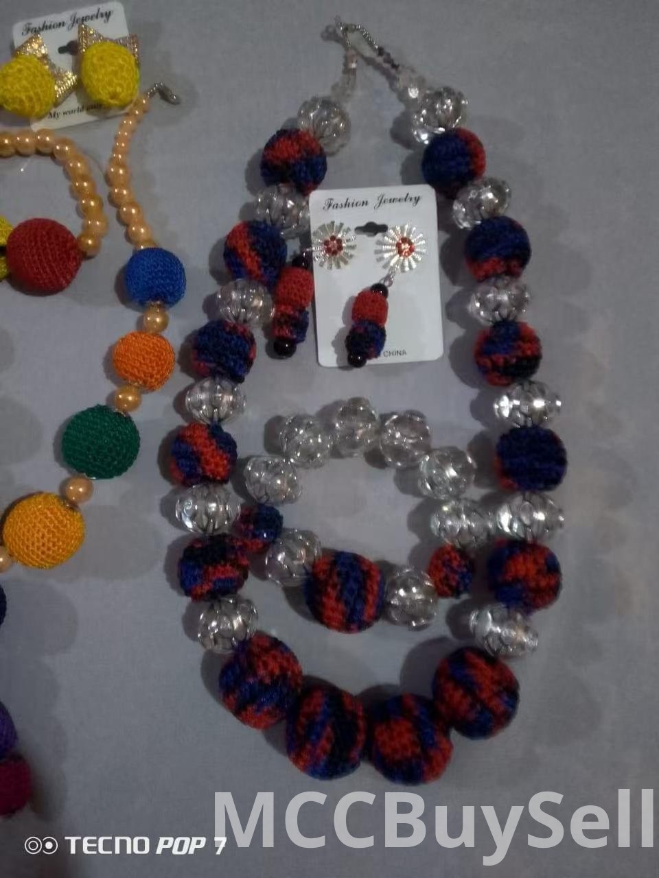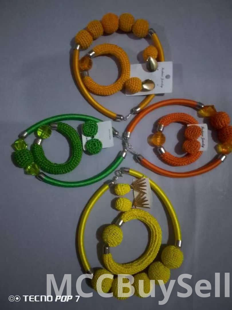 -We have Necklaces , bracelets, and earrings carefully hand-made with Velo materials and twine thread.