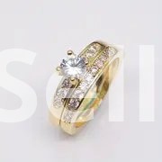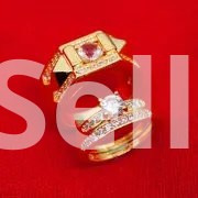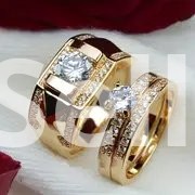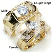 Daily Wear and Gift Giving; Set 14K Golden Plated Copper Couple Rings - Luxury Fashion Jewelry, Synthetic Zirconia Engagement and Wedding Band for Men and Women.