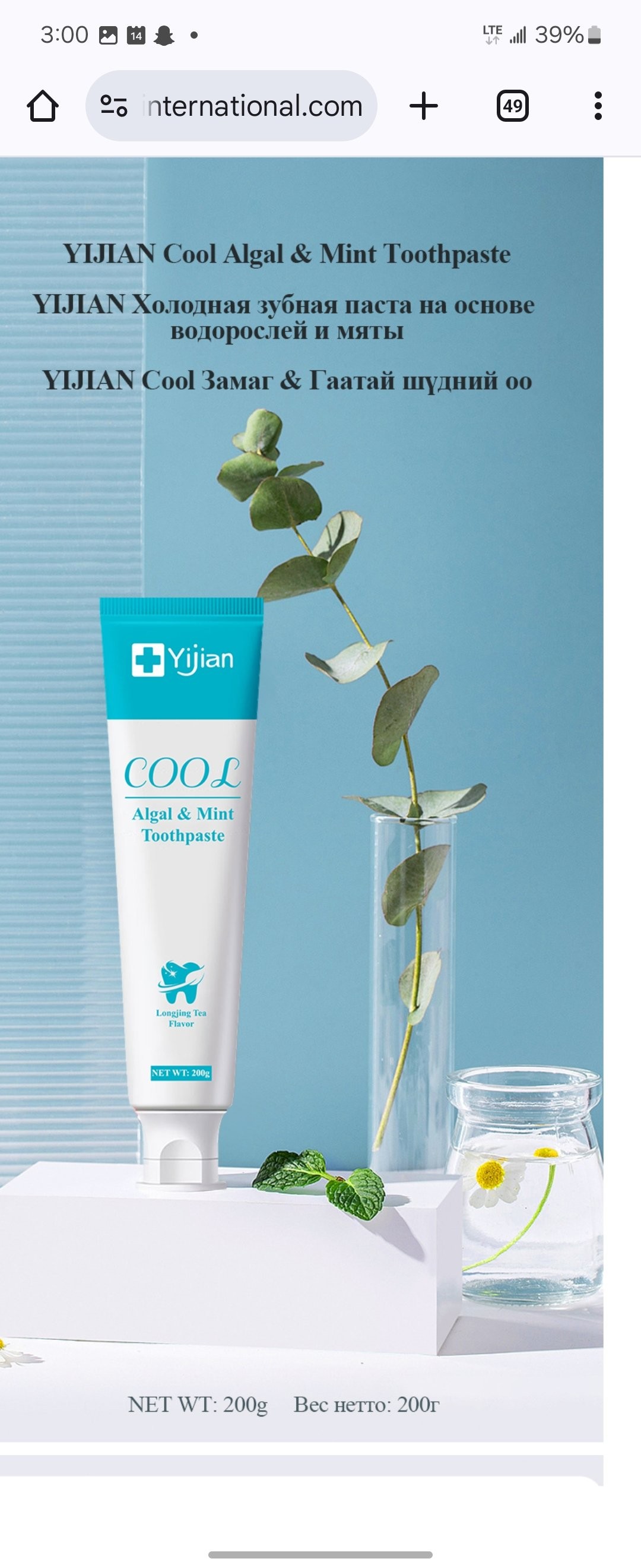 YIJIAN Cool algal & mint toothpaste Maintains oral health by cleaning teeth Three mint extracts: impressively refreshing breaths thanks to the selection of menthol, peppermint oil and menthone glycerol ketal.