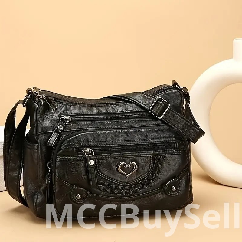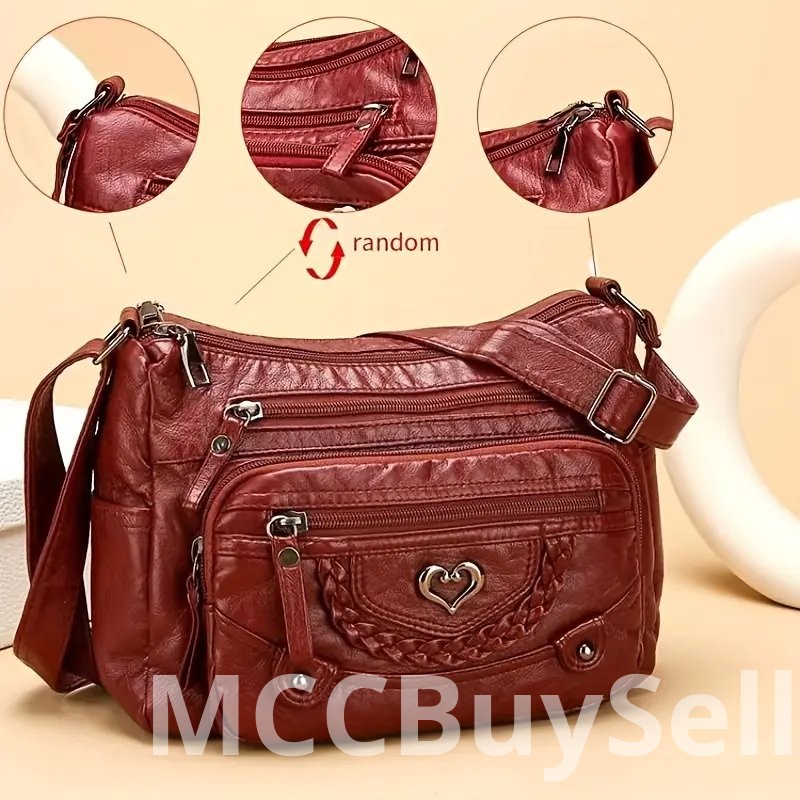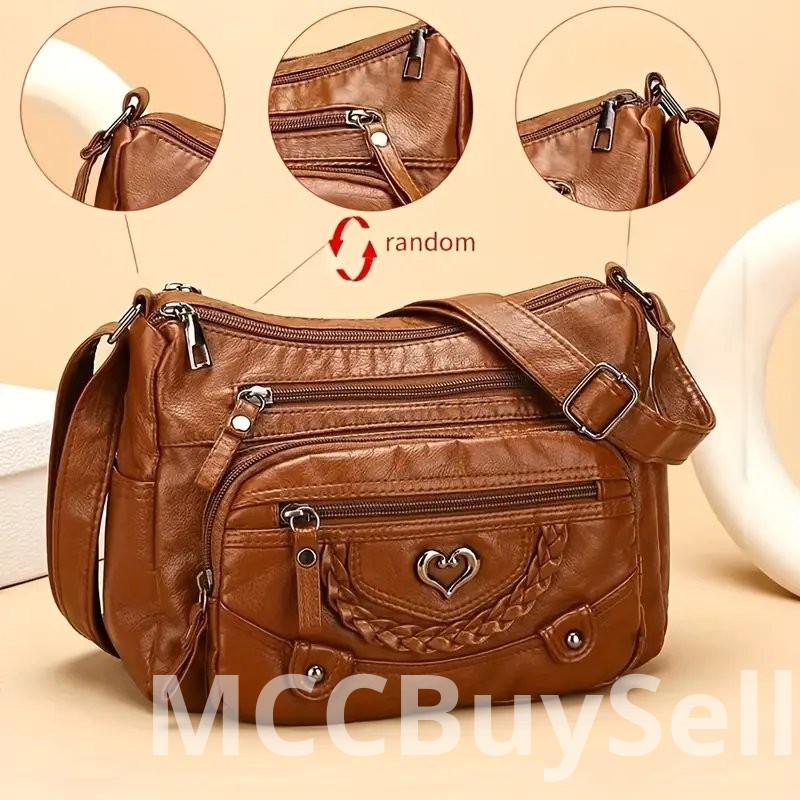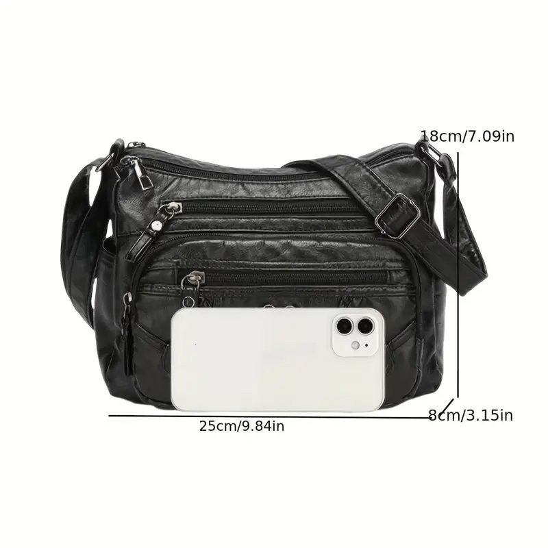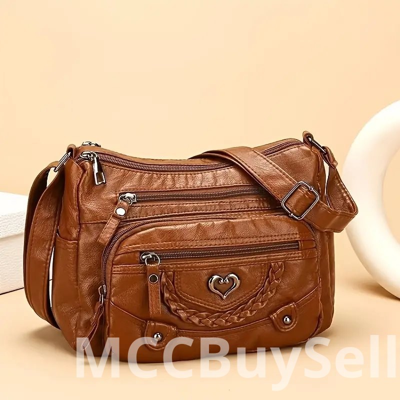 Vintage Crossbody Bag Brown in Chic Perfect for daily use, small crossbody bag - chic vintage crossbody bag with adjustable strap, many zipper pockets, solid colour, casual style.